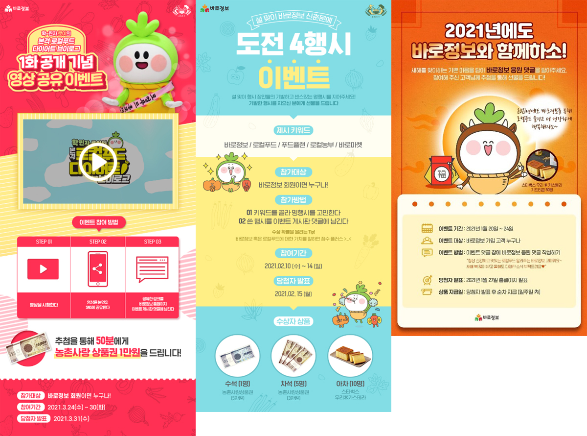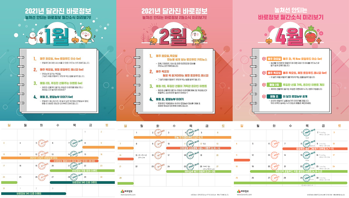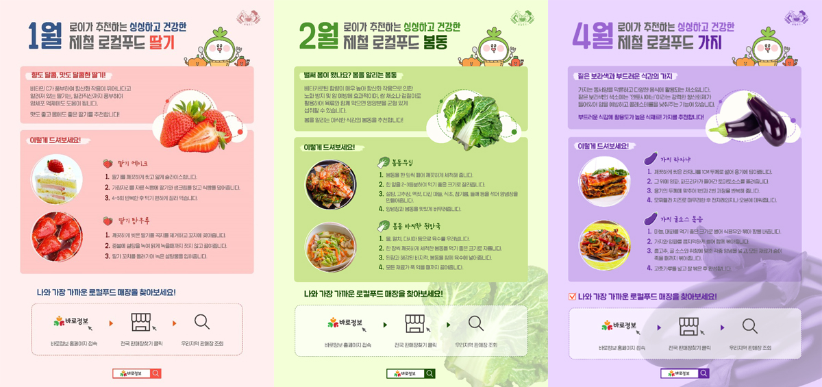 매월 다른 주제와 로컬푸드 아이템을 활용하여 온라인 바이럴 될 수 있는 콘텐츠 및 이벤트를 제작하였습니다.