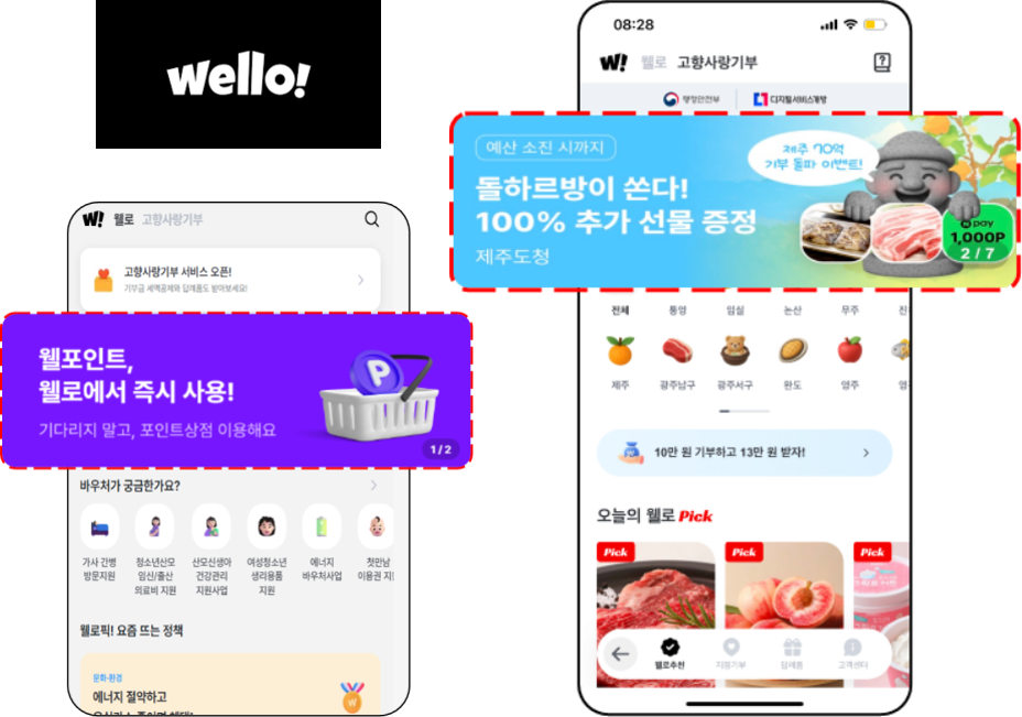 웰로 개요 - 각 분야 별 정책 관심 타겟층에게 효율적 노출 - 단시간 내 최대 노출 보장 - 연령 및 관심 분야 맞춤 설정을 통한 타겟팅 가능 노출 지면 - 앱 내 메인 페이지 중앙 집행 레퍼런스 최소금액 2,500,000원~ 문의하기